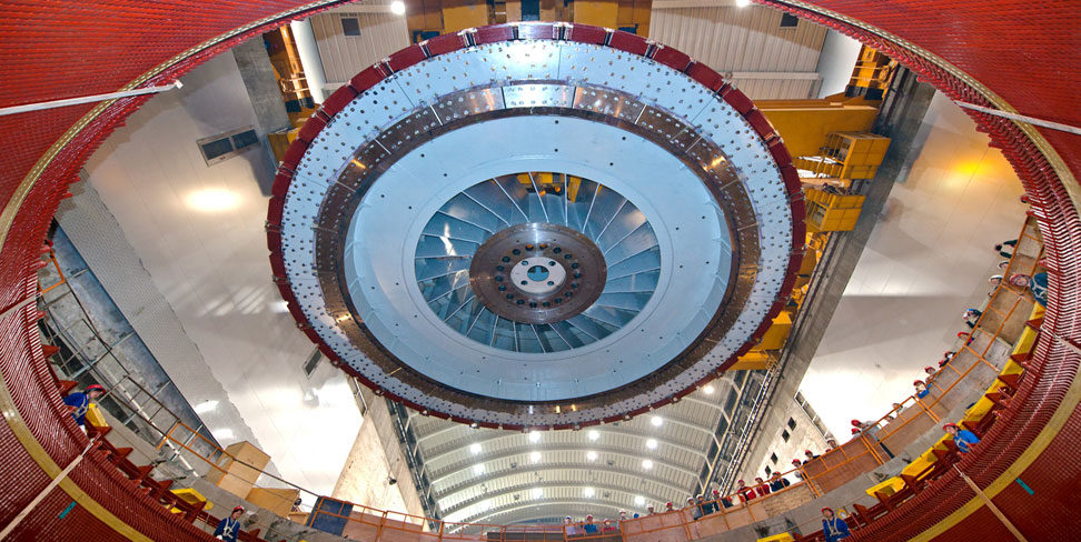 溪洛渡水電站最后一臺機組轉子成功吊裝就位