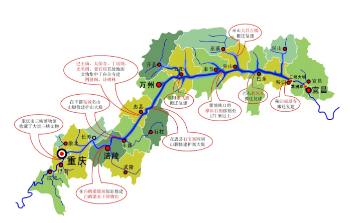 三峽庫區、壩區文物保護示意圖
