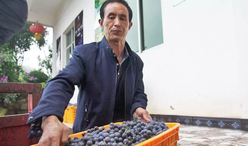 狄光軍正在搬運(yùn)葡萄