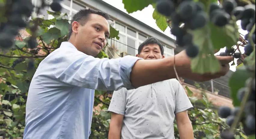 李天富正在采摘葡萄