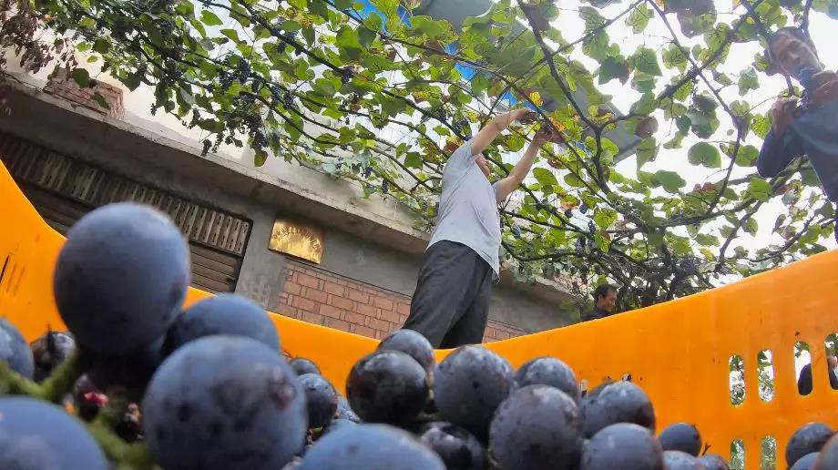 今年,李天富家的葡萄全部被一家建在村中的葡萄酒廠收購(gòu),葡萄采摘完成后,只需要幾分鐘的路途,就能夠進(jìn)入到酒廠,等待被釀造成甜美的葡萄美酒。