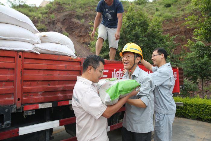 烏東德施工區(qū)“送清涼”活動中,楊宗立將一袋綠豆送到參建單位負(fù)責(zé)人手上。 攝影:袁磊