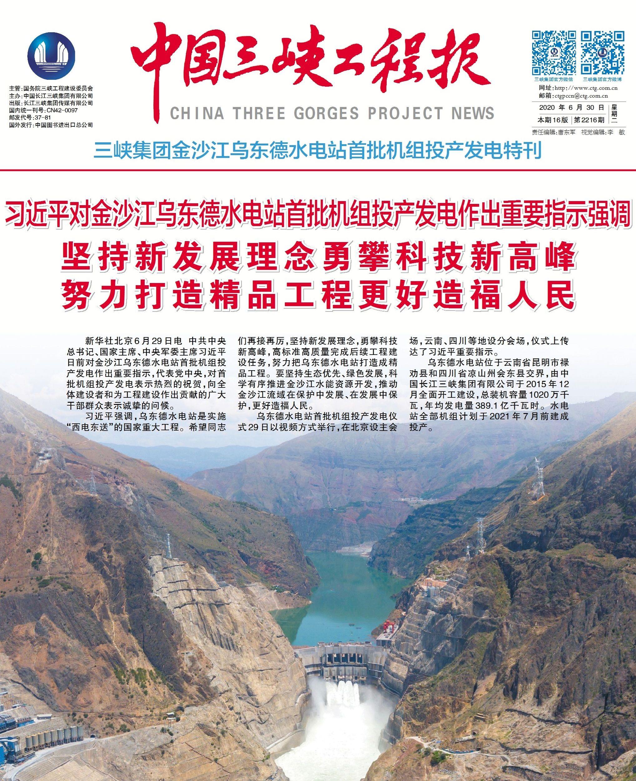 • 《中國三峽工程報》烏東德水電站首批機組投產發電特刊