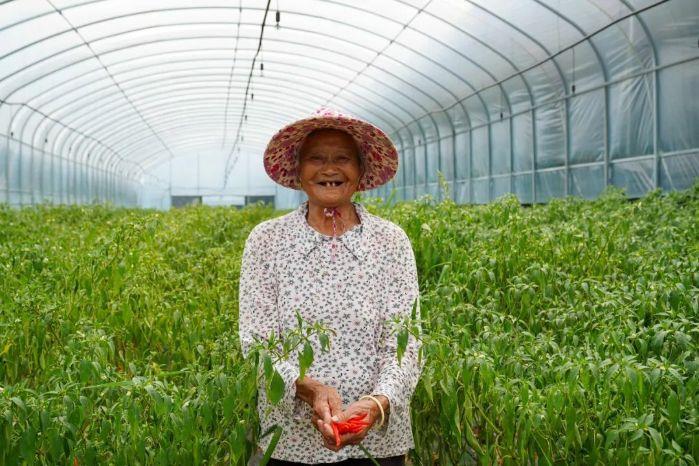 村民在大棚采摘辣椒 攝影:陳磊