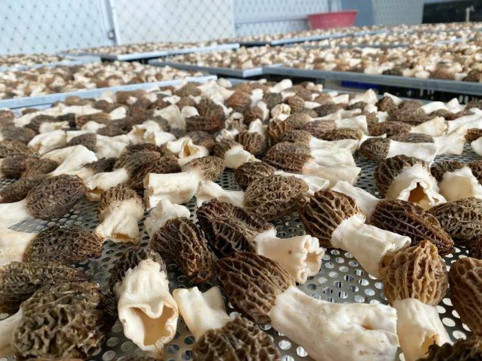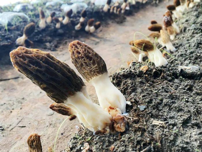 羊肚菌,因其酷似羊肚而得名,乳白色菌桿支撐著灰褐色傘狀菇朵,既是宴席上的珍品,又是久負盛名的食補良品,被譽為“菇中皇后”,民間有“年年吃羊肚、八十照樣滿山走”的說法,冬種春收,生產周期短,效益高,見效快。