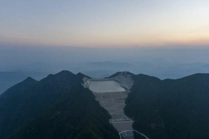 清晨時分,千米海拔的青山之巔,層層薄霧隨風(fēng)飄散,長龍山電站上水庫水量逐漸蓄滿,仿佛一汪云間天池,水面微波蕩漾蓄勢待發(fā),等待著用電高峰的到來。“