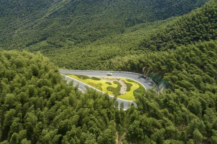 乘車穿行在上下水庫之間,我們可以看到明線道路每個回頭彎都經(jīng)過了精心設(shè)計,樹木、草地、景觀石等元素巧妙搭配,每一處都是一個個性十足的小公園,滿眼綠色觸手可及;每一條隧道盡頭都是不一樣的景致,奇山怪石一一呈現(xiàn)。