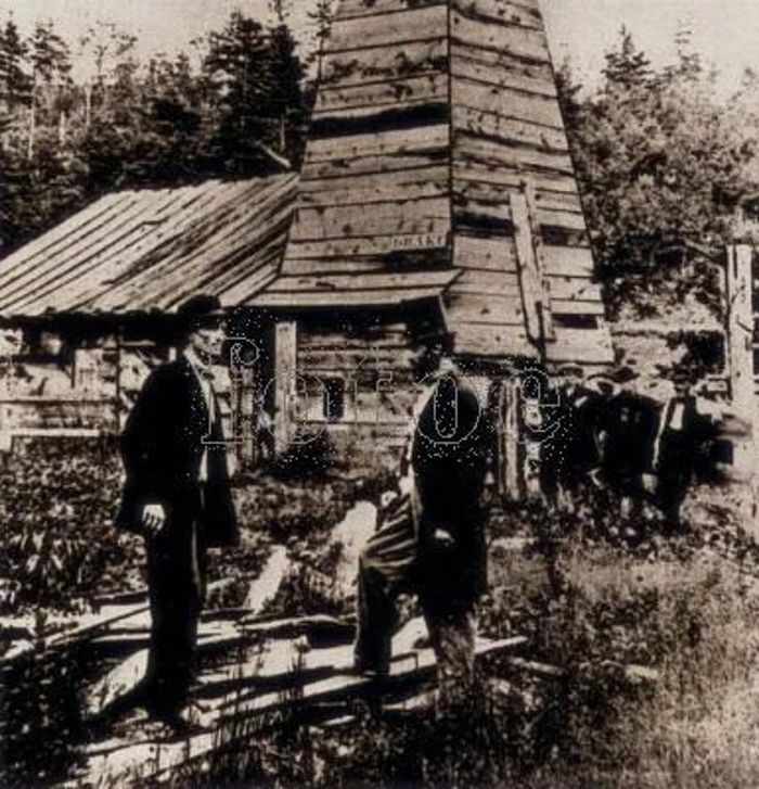 ▲19世紀(jì),德雷克上校(戴高帽者)在賓夕法尼亞州的泰斯維爾。1859年,德雷克在泰斯維爾開(kāi)掘出世界第一口油井? ?文化傳播 FOTOE-10234126