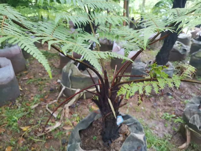 陰生桫欏是一種喬木狀的蕨類植物,有“蕨類植物之王”贊譽(yù)。它的莖干高度可達(dá)5米,直徑約8厘米,葉柄褐禾稈色至淡棕色,葉片三回羽狀深裂,生長于海拔350米-1000米林下溪邊陰濕處。由于其稀有性和特殊的生態(tài)價值,陰生桫欏被列為國家二級保護(hù)野生植物。