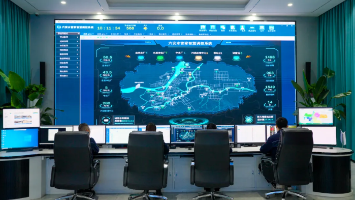目之所及,服務范圍覆蓋六安城區120平方公里的27個泵站、7個水質凈化廠、4座供水廠、5個調蓄池、1座中水廠、1座污泥處理中心,還有合計長達3950公里的供排水管網,被“濃縮”在這個智慧“大腦”的方寸之間。